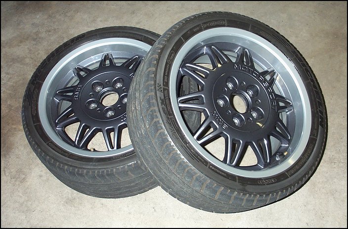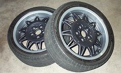Even before I purchased the M3, I've thought about painting the center's of the factory M3 wheels in a metallic charcoal gray to change the look of the car from a stock M3 until I could acquire some BBS RK wheels for my street wheels. Plus, I just really like the look of a two tone wheel (especially brushed centers with polished lips on a two or three piece bare aluminum wheel like the ones I had on my Mustang). The wheels that I plan on getting in a few years for racing, SSR Comps, have an anthracite center (charcoal gray) and a machined lip, so I wanted the factory M3 wheels to have a similar appearance since they'll be my racing wheels for the first few seasons in Stock Class.