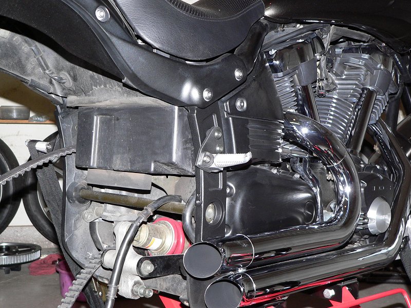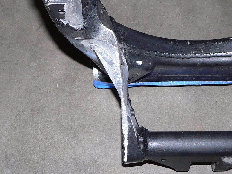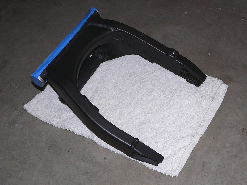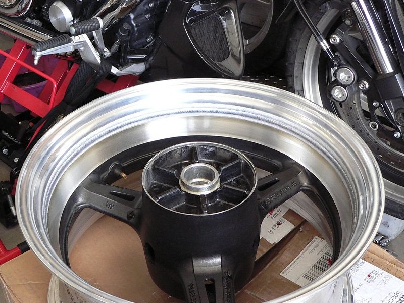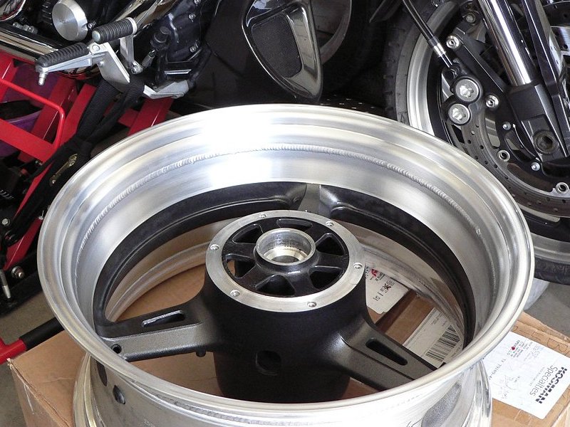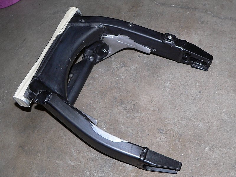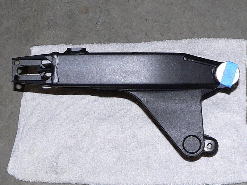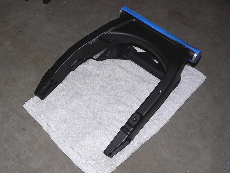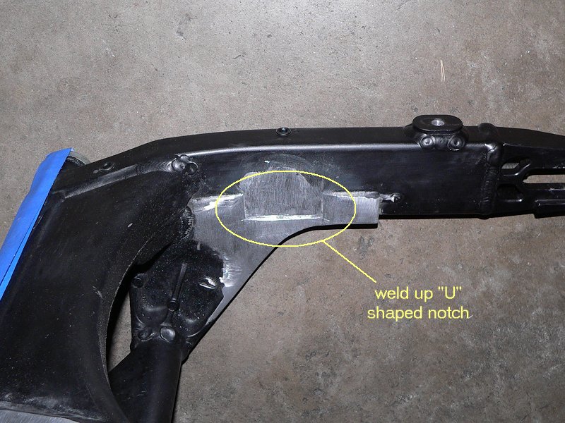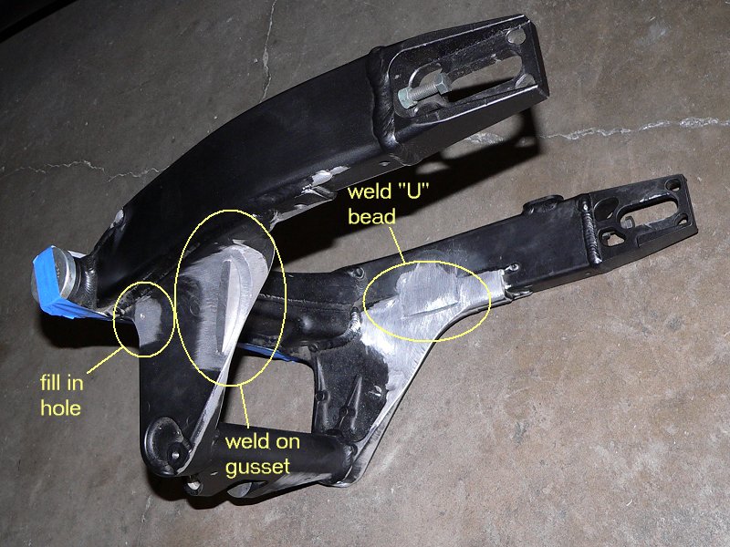My plan for this '05/'06 winter project is to: Other non-240 items to do during the winter project: 11/22/2005 Put the bike up on the jack and strapped it down. Marked off the areas on the inside of the swingarm where I'll need to remove material to fit the wider wheel and tire. Then I removed the rear brake caliper, brake caliper bracket, and rear wheel and tire. 11/23/2005 Disassembled the throttle-side switch housing to remove the ignition kill switch to paint it flat black. While the switch housing was disassembled I also decided to re-paint throttle cable elbows black (the elbows were scratched and the factory color is that dark army green). I was also able to cut out the indentation in the rear brake caliper bracket. ![]() 11/25/2005 Cut the belt guard mounting tabs off the swing arm and smoothed down those areas. I also removed the rear brake fluid reservoir by just plugging the line with a banjo bolt. I used a large rubber grommet to keep the line tucked behind the frame. ![]() ![]() 11/26/2005 I took the rear wheel and tire to get the tire dismounted and all the wheel bearings removed so that I could send the wheel off to Kosman Specialties for the conversion. I also took advantage of the 70 degree temps today and painted the rear caliper and newly modifed bracket. ![]() 12/2/2005 Removed the swingarm from the bike and started on the material removal for about 3 hours today. I got almost all of the material removal done, but I still have a little more work to do for final fitment. I'll need the converted wheel with the 240 tire mounted up for test fitting to finish everything. 12/3/2005 Worked on the swingarm for about 1 more hour today. All I did was smooth out what I had done yesterday, and cleaned up the swingarm for some photos. ![]() ![]() ![]() ![]() ![]() ![]() 12/15/2005 Cut the exhaust mounting tabs off the frame today and smoothed and sanded that area down so that it's ready for paint. I'll mask off and paint that area of the frame when there's a decently warm day. 12/17/2005 Ordered a new Metzeler ME880 XXL 240/40R18 tire from AMT today as well as new bearings and seals for the rear wheel from Yamaha of Hamilton, so that I'll have everything ready to go when I get the wheel back from Kosman Specialties. 12/23/2005 The 240 tire arrived today. Sitting side by side with the 210 that it's replacing, it doesn't appear to be that much larger, but the factory 17"x6" wheel pinches the sidewalls in so much that it makes the 210 look smaller and the center of the tread wears out really quick. I found a different place to mount my state inspection sticker plate, so I also cut off the belt guard mounting tab towards the front of the swingarm. ![]() 12/25/2005 Merry Christmas! The temps today were high 60's, so I decided to paint the part of the frame where I had cut off the factory exhaust mounting tabs. I used "GolfHawk's" paint technique by using a flat black base, then metallic black, then one last light dusting of flat black again to match the factory frame and engine paint almost perfectly. ![]() 12/30/2005 The modified wheel arrived today. The new lips come in a lightly machined and polished appearance finish which doesn't really match the factory machined and clearcoat finish. Also, when they weld the new lips onto the wheel, it "yellows" or "browns" the clear coat that is left on the original lip slightly (from the heat during welding). So I just "brushed" or scrubbed the whole lip (new and original w/clearcoat) with scotchbrite and soapy water and then used some polishing compound on the clearcoated portion and the wheel now has the appearance of the factory finish. You can obviously still see the weld beads, but I actually think it looks kinda cool! ![]() ![]() 12/31/2005 Got the tire mounted onto the wheel today. I also mocked it up in the swingarm, and realized that I won't have to clearance anything else on the swingarm. I've got 7mm of clearance on each side, so I will just do some final prep work and take it to my welder to have a small bit of welding done. ![]() ![]() 01/01/2006 Happy New Year! I finished the final prep work on the swingarm before I take it to the welder this week. I made a cresent moon shaped gusset from 1/4" aluminum plate for the left side that will be welded into place for reinforcement. I used 1/2" threaded rod with nuts and washers to keep the swingarm square during welding. ![]() ![]() ![]() ![]() ![]() 01/05/2006 The bearings and seals for the rear wheel arrived and are now installed and the rear brake system is bled. All that's left is to get the swingarm back from the welder, prep and paint it, and install it and the rear wheel and tire. 01/06/2006 Picked up the swingarm from the welder today. It looks great! Here are some pics of it before prep and paint. ![]() ![]() ![]() ![]() 01/07/2006 I painted the swingarm using "GolfHawk's" technique again to get a nearly perfect match of the factory flat metallic black paint on the frame. Here are the pics of the finished swingarm before installation. ![]() ![]() ![]() ![]() ![]() ![]() ![]() ![]() 01/08/2006 The final install went together without any problems whatsoever. Check the current photos to see pics of the modified swingarm installed. Brazeau Racing - Road Star Warrior |