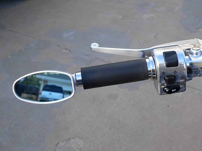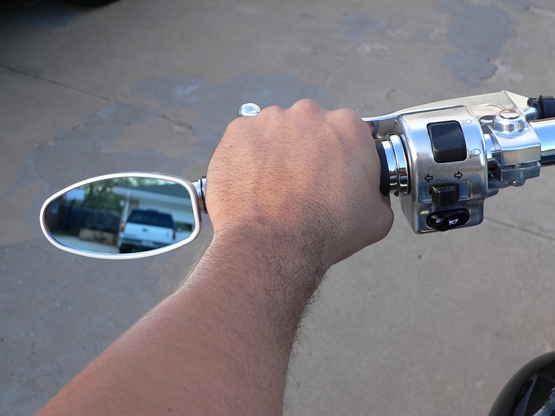 The visibility from this mirror is awesome when positioned on the end of the bar.